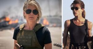 - Together with baby John Connor, Actress Linda Hamilton’s Sister Leslie appeared at the Playground scene.